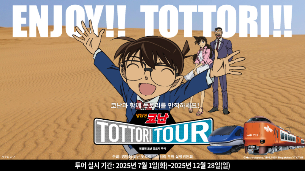 명탐정 코난 돗토리 투어는 돗토리현 내의 관광지를 순회하며 수수께끼를 풀고, 각 장소에서 오리지널 핀뱃지를 수령할 수 있는 오리지널 체험형 투어입니다. 해당 상품은 JR패스와 결합된 세트로, 교통과 입장을 한 번에 해결할 수 있습니다.