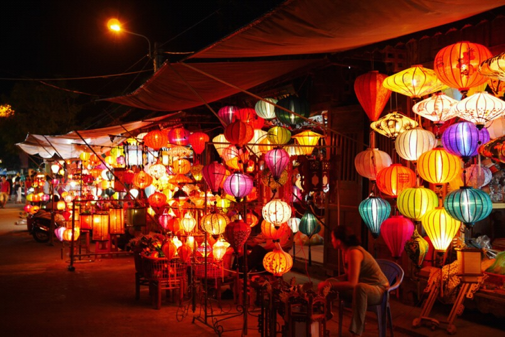 여기에서 화려한 조명에 가득한 호이안의 야경을 보실 수 있습니다.
