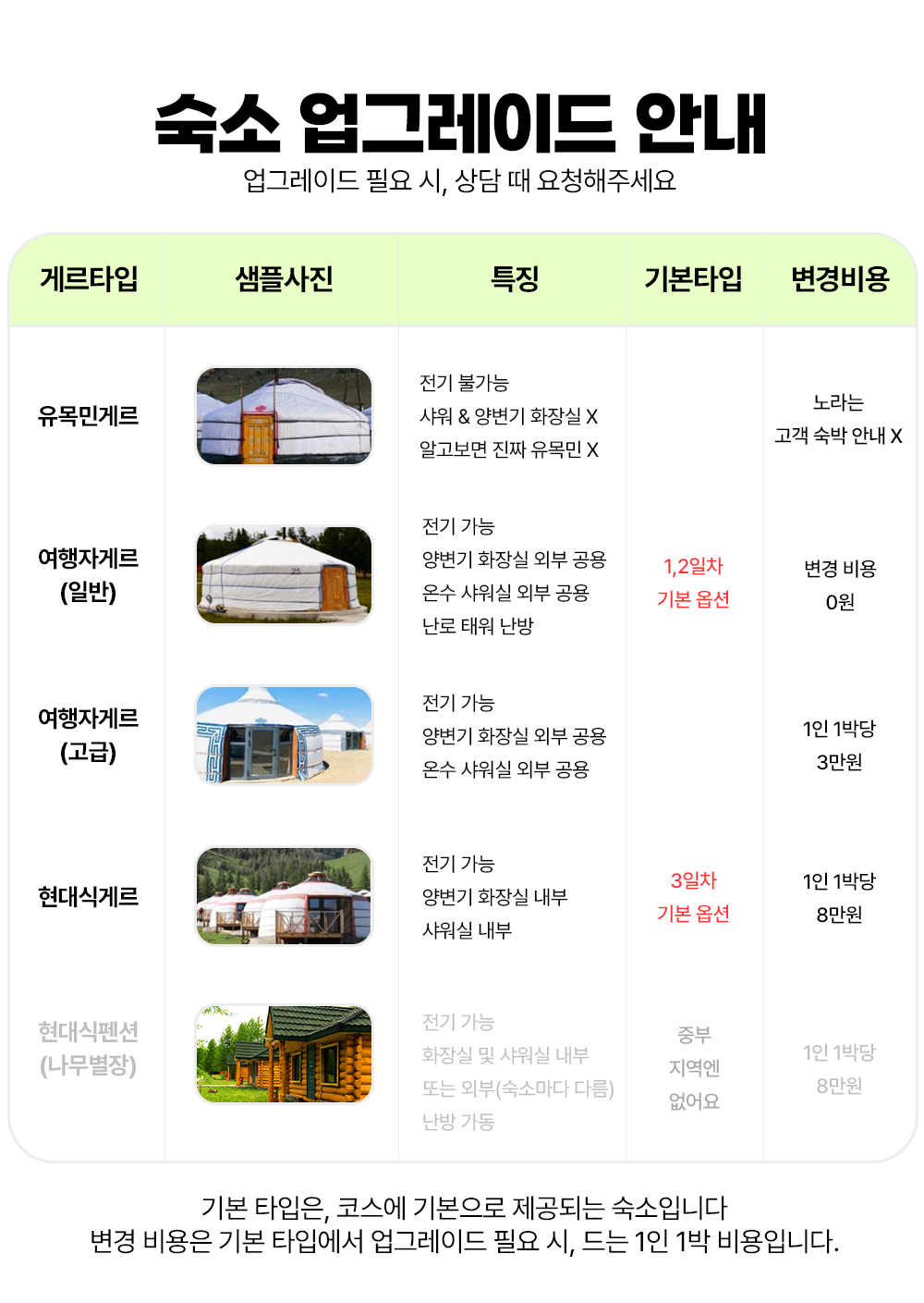 • 여행자 보험 가입 후 투어에 참여하는 것을 권장하며, 특약 사항(말/낙타 체험 시 보상)을 추가하는 것을 추천합니다. 본 상품은 여행자 보험이 포함되지 않은 상품입니다.