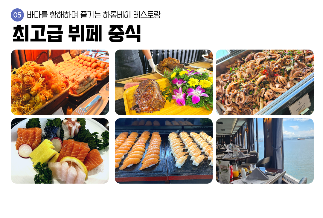 • 🍴 식사제공 : 고급 뷔페 중식 ( 각종 회초밥, 스시, 연어회, 금박 스테이크, 스파게티 등 무한리필 뷔페 )