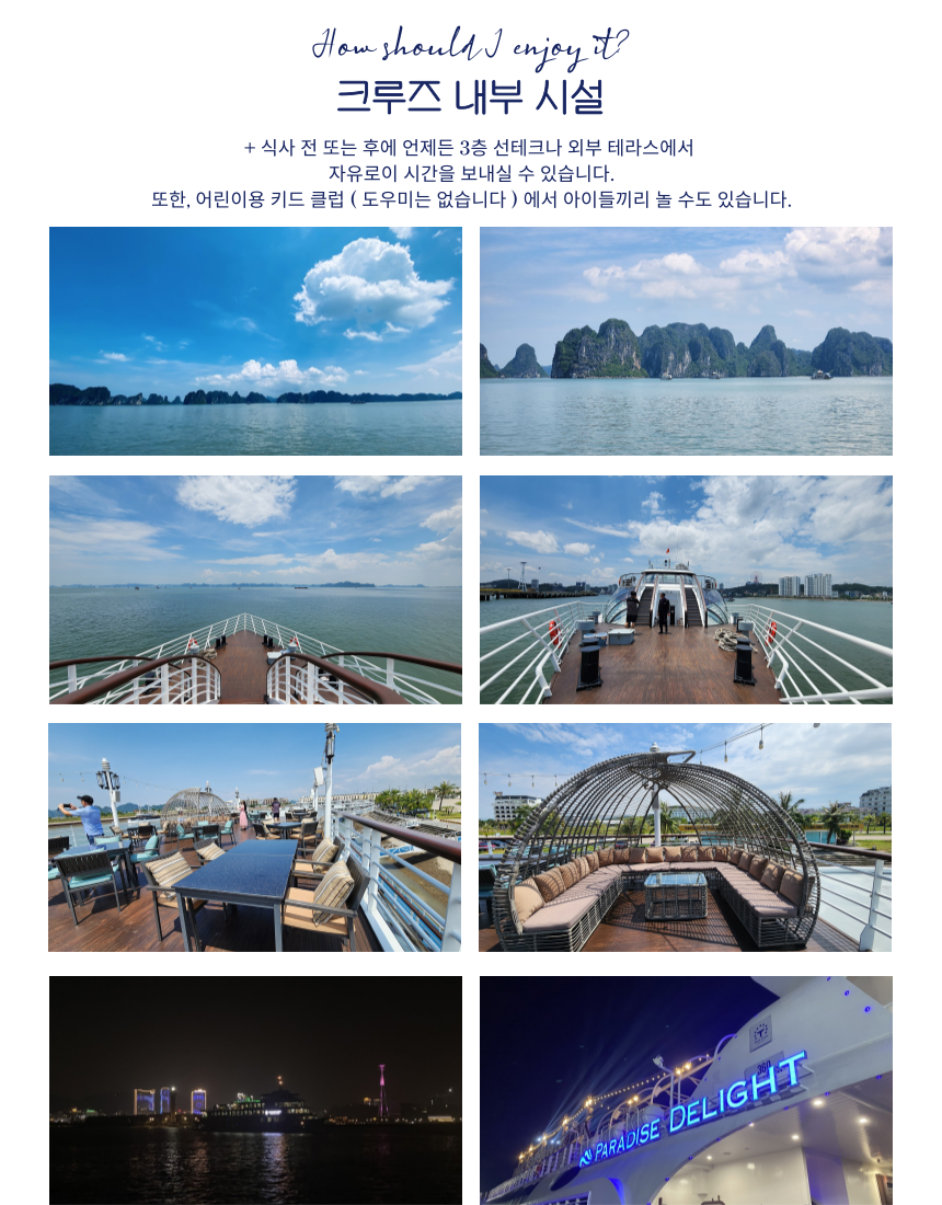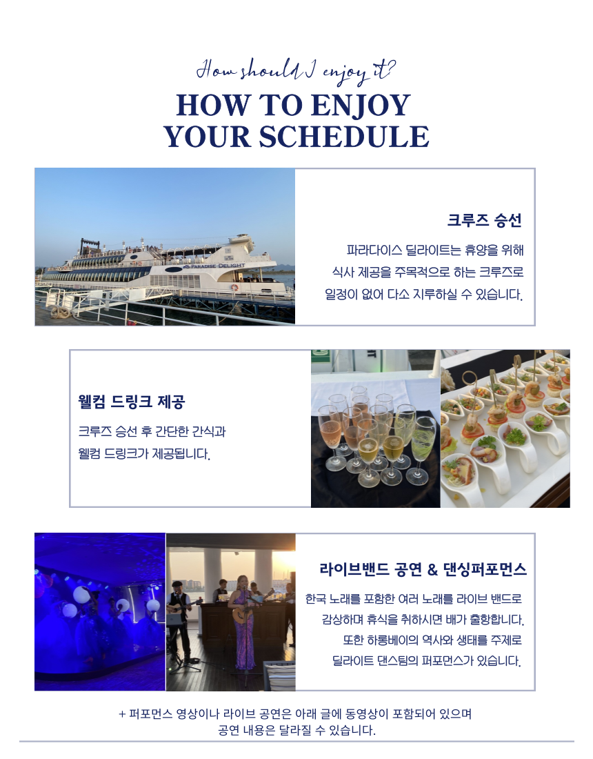 * 지금부터 이하 내용들은, 당일 크루즈 현장 상황에 따라 예고 없이 변경될 수 있습니다.