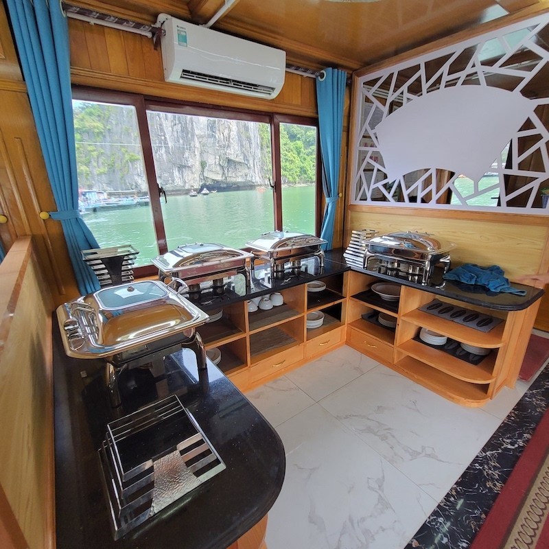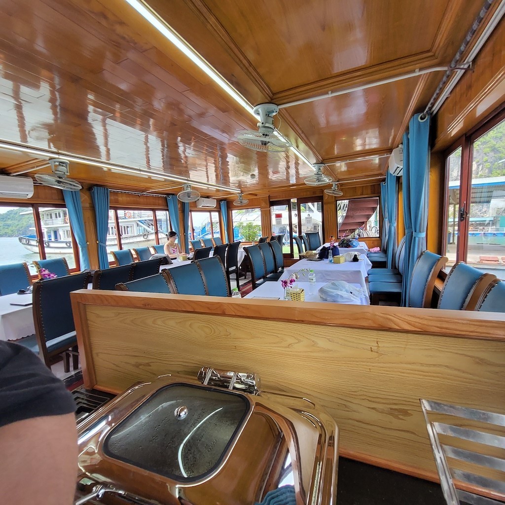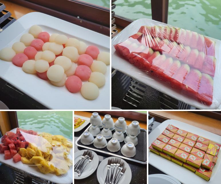 메뉴는 당일/현장 상황에 달라 질 수 있습니다. 보트가 출발하면, 당일 투어 가이드의 일정 소개, 안전사항 안내 후, 점심식사가 제공됩니다. 아주 화려하진 않지만, 맛있게 잘 제공됩니다. 일부 메뉴는 리필이 조금 더딘 경우가 있으므로, 최대한 빨리, 많이 드세요~