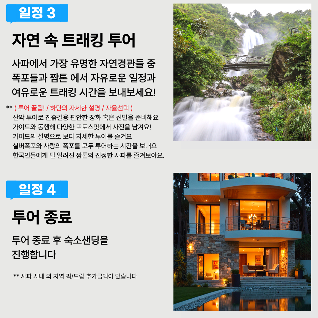🏨 투어 종료 (사파 시내 외 지역 픽/드랍 추가 금액이 있습니다.)