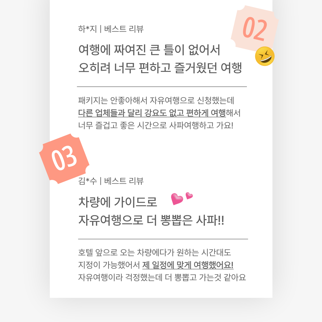 식당이나 카페가 포함되지 않아 더욱 자유로운 여행코스!