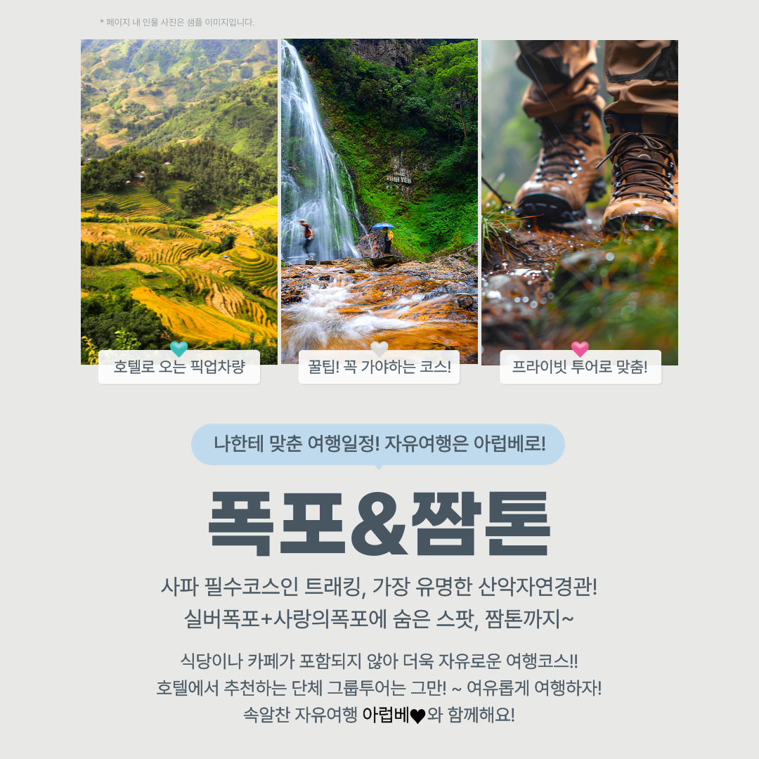 사파의 유명한 산악경관으로 실버 + 사랑의 폭포&짬톤 코스를 알차게 즐겨보세요!