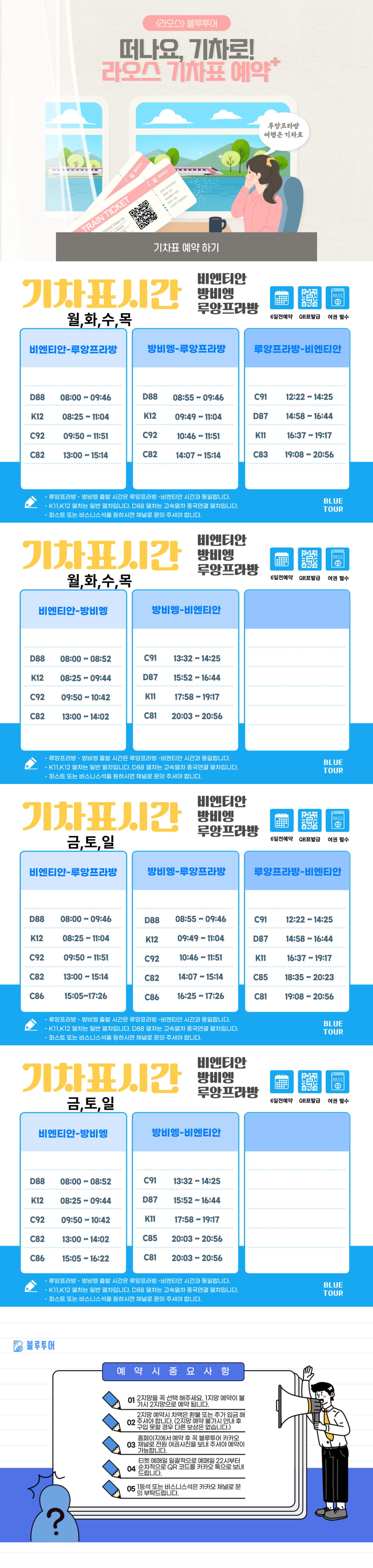 비방비엥→루앙프라방 기차표 예약 홈페이지에서 예약 후 블루투어 카카오 채널로 여권사진을 보내 주세요.