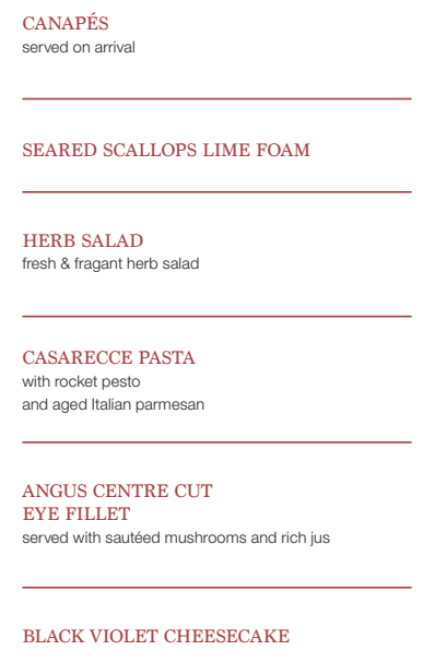 - 창가좌석 가능한 6 코스 식사 (음료 및 주류 불포함)