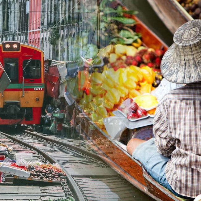담넌사두억 수상시장과 매끌렁 시장(위험한 기찻길)으로 떠나는 투어입니다.