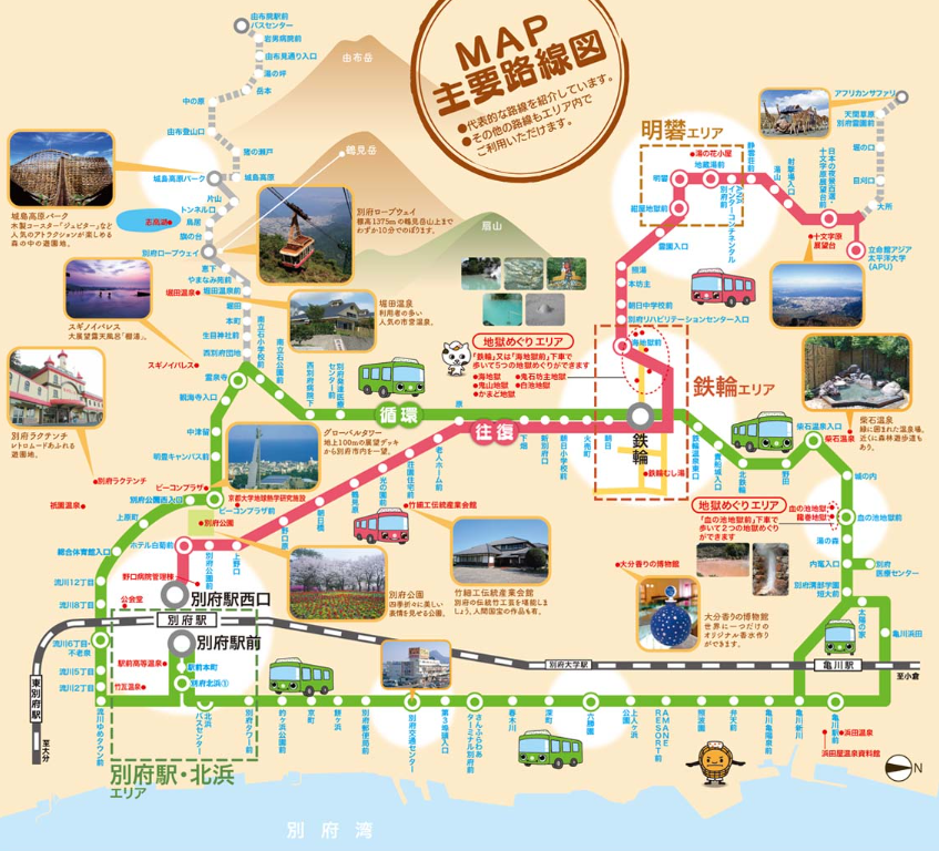• 운행구간 : 벳푸 시내 전 노선, 유후인, 키지마 고원, 아프리카 사파리 구간