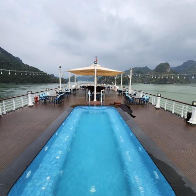 점심 식사 후 다음 일정까지 휴식을 취합니다. 선상에서 보이는 하롱베이 풍경이 참 예쁩니다 중식 식사 후 부터 언제든지 수영장 이용이 가능합니다.