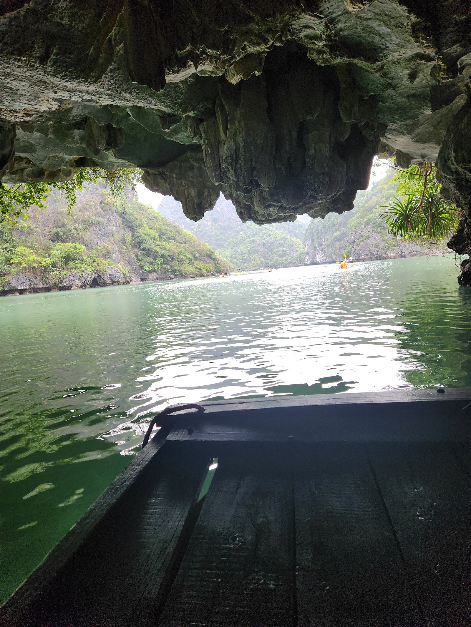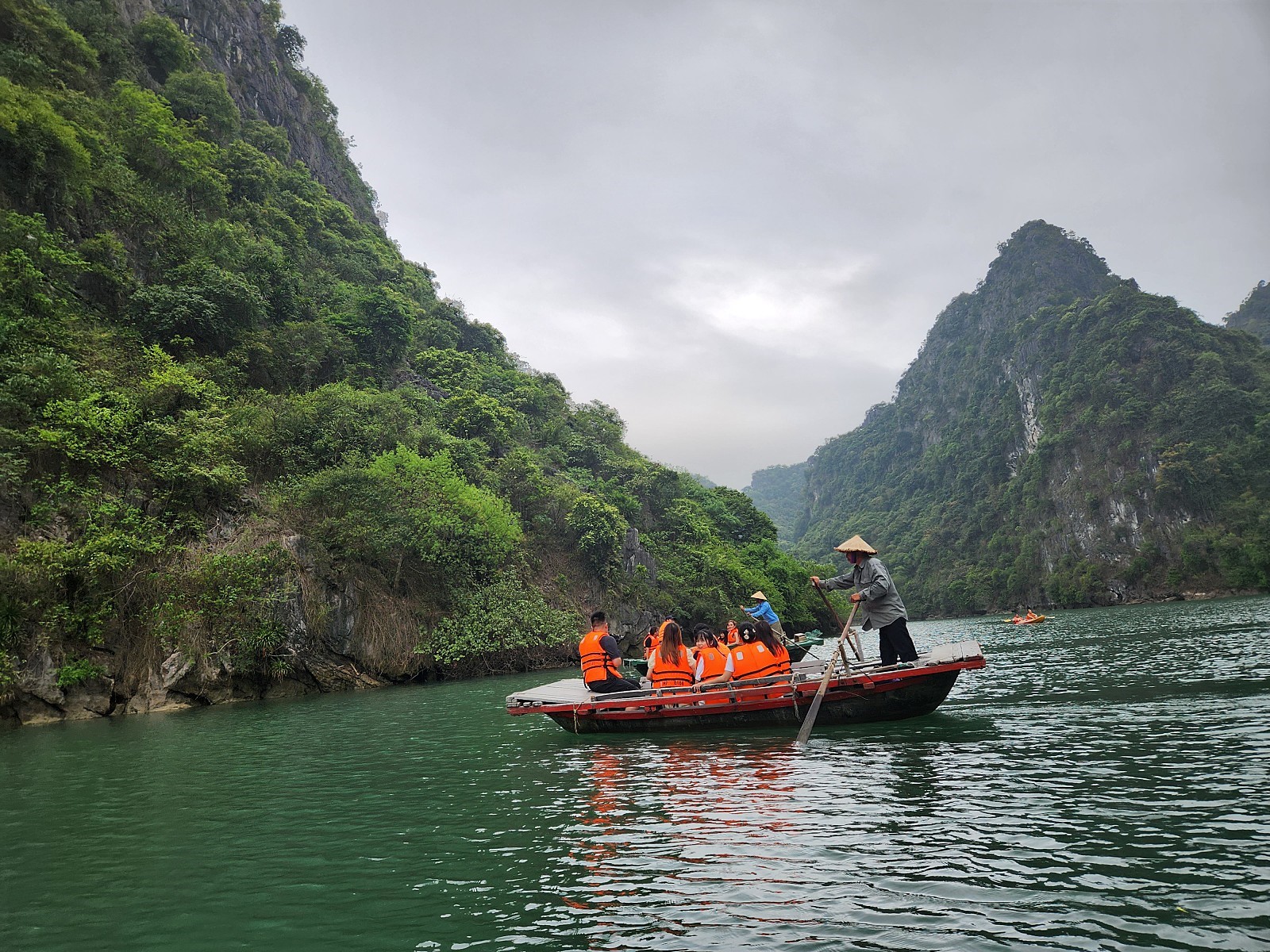 Dark&Bright 동굴을 방문합니다. 카약과 밤부보트 를 타고 하롱베이의 아름다운 동굴들을 지나가며 자연경관을 관람합니다. 운이 좋으면 원숭이를 발견 하실 수도 있습니다. 하롱베이에서 가장 유명한 동굴인 루온 동굴과 매우 흡사합니다. 밤부보트와 카약 중 선택 가능합니다.