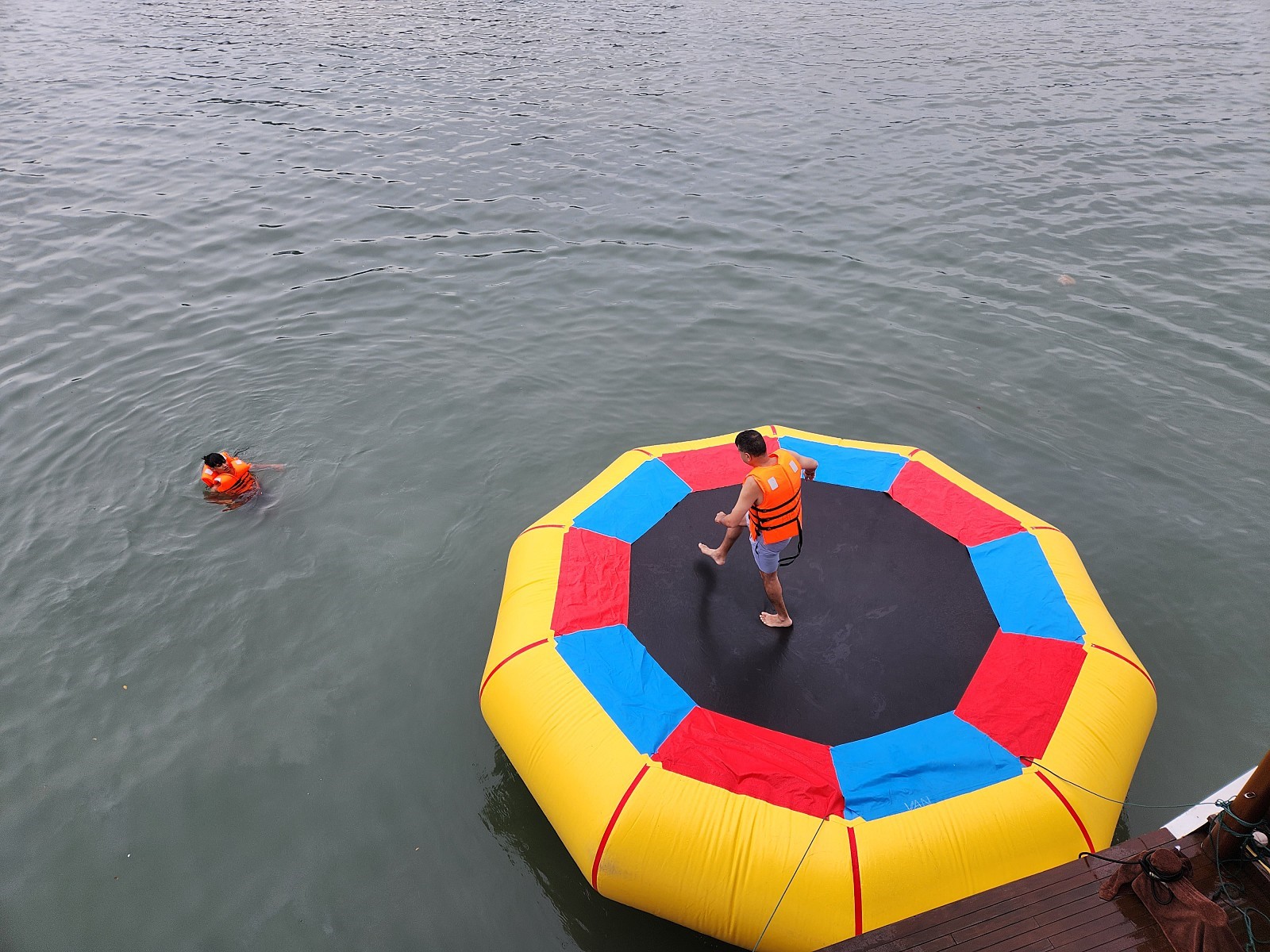 이후 바다위 트램펄린을 이용한 바다수영과 카약을 즐기실수 있습니다. 스피드 보트를 이용해 어느 장소로 이동하지는 않고 크루즈의 로비와 연결된 바다 위에서 진행합니다.