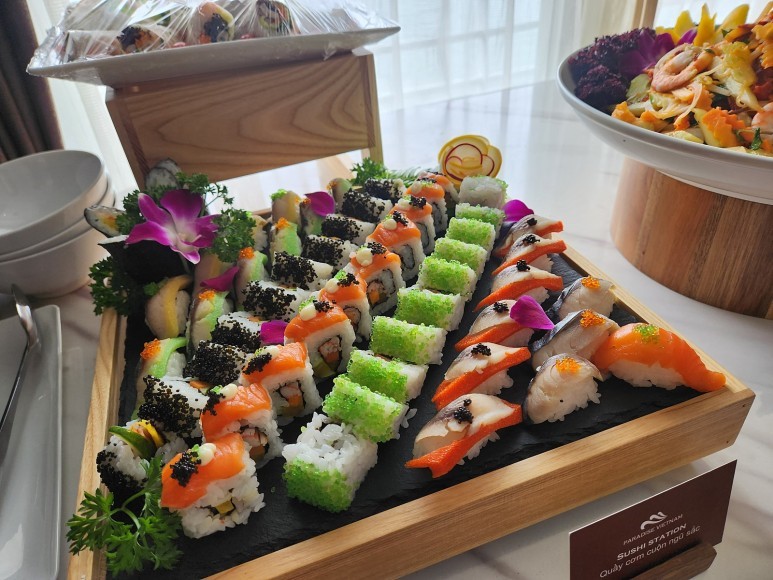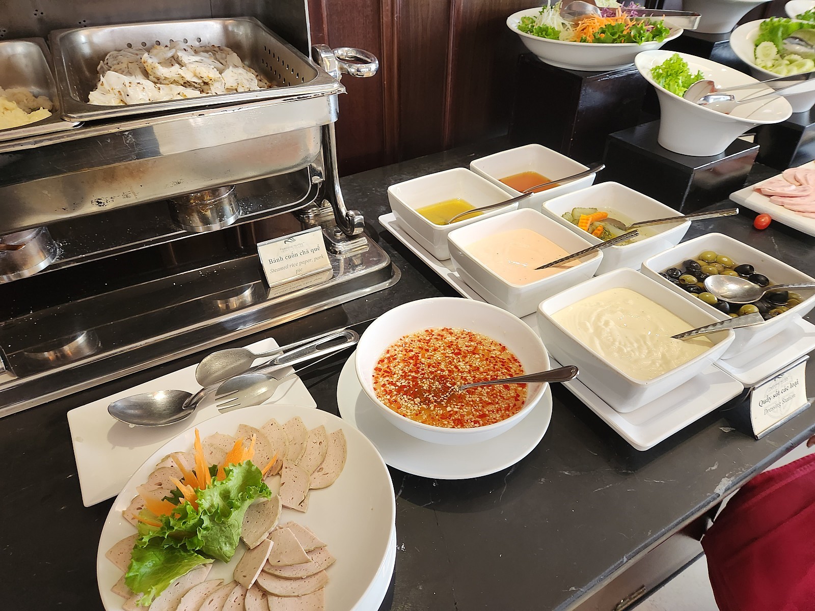 브런치를 즐기신 후 오전 10시경 보트에서 하선을 하고 스피드 보트를 이용, 항구로 복귀합니다. 준비된 전기차를 타고 체크인 했던 호텔로 돌아가며 여정이 끝을 맺습니다. * 아이러브베트남을 통해 파라다이스 그랜드 크루즈와 VIP 리무진픽업을 동시에 예약하신 경우, 파라다이스 스윗 호텔에서 부페 런치 또는 간단한 점심 도시락을 추가로 제공해 드립니다. (단, 왕복 리무진 포함된 예약시) 11시경 부터, 준비된 점심을 드신 후, 크루즈 직원들의 안내에 따라 리턴 리무진을 타시면 투어 일정이 종료 됩니다. 리턴 리무진은 정오에 출발하며, 하노이 도착 예정 시간은 약 오후 2시 30분 정도 입니다. 아래 사진은 호텔에서 제공되는 간단한 뷔페 입니다. 그날 식사 인원에 따라, Ha Long 빌딩에서 뷔페 또는 도시락이 제공됩니다. 복귀 차량 배정은, 직원들이 안내드립니다