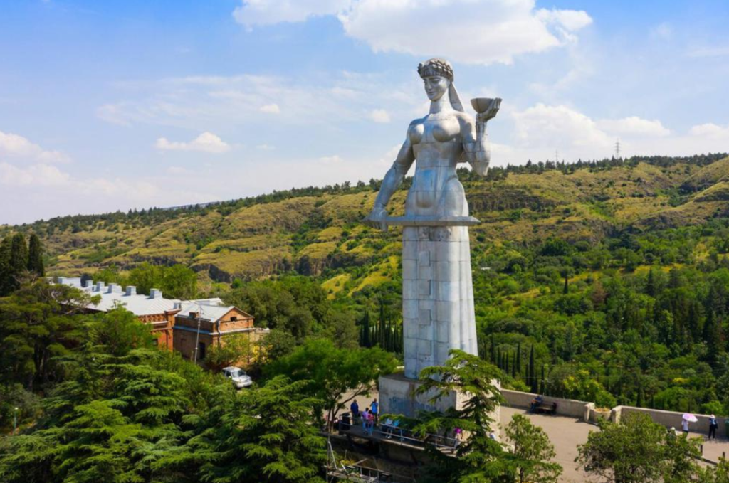 한 손엔 칼과 다른 한 손엔 와인잔을 들고 조지아를 지키고 있는 상징적인 동상!