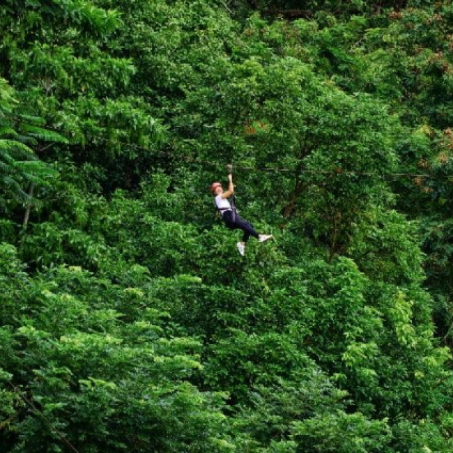 푸켓에서 짜릿하고 스릴 넘치는 액티비티를 원한다면 하누만 플라잉 짚라인을 체험해보세요. 유럽산 고품질 장비를 착용 후 케이블 장치를 타고 외줄타기, 스카이 브릿지, 하늘 계단 등 다양하고 재밌는 액티비티가 준비되어 있어요. 자연 그대로의 멋진 정글을 배경으로 플라잉 하누만에서 최고의 경험을 해보세요!