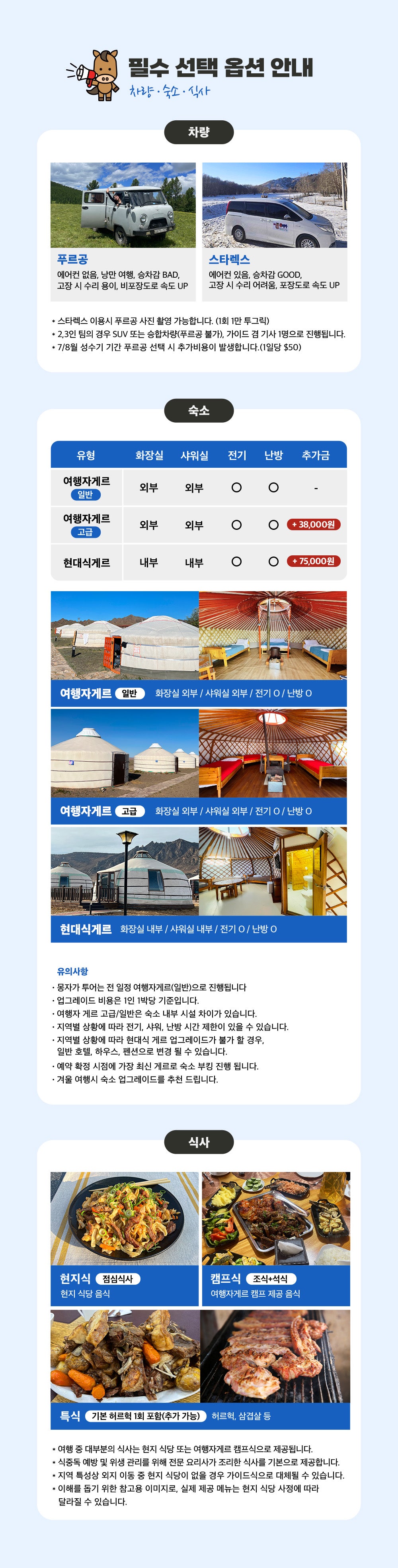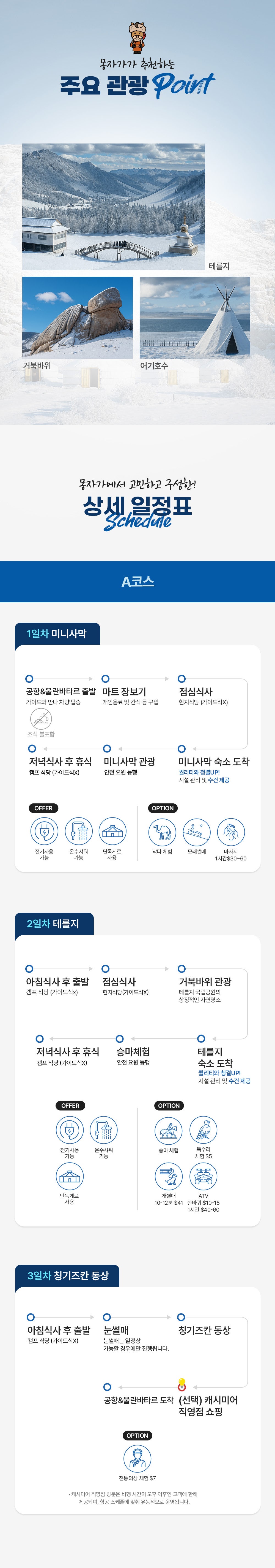 모래썰매,낙타,사막은하수,홉스골호수,무릉,허르헉,승마,캠프파이어,보트,볼강