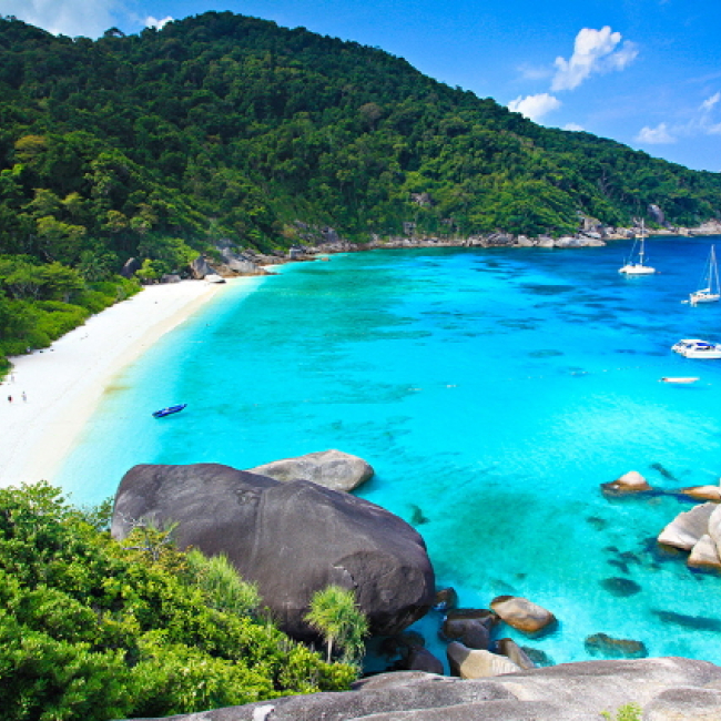 시밀란은 9개의 섬으로 이루어진 군도로 정확한 명칭은 무 꼬 시밀란 국립공원(Mu Ko Similan National Park)입니다. 푸켓 북서쪽으로부터 약 90KM 떨어진 곳에 위치하고 있으며 말레이시아와 근접해 있기도합니다. 시밀란의 뜻도 말레이어 9에서 유래되었으며 각 섬마다 번호가 지정되어 있답니다. 시밀란은 거북이의 산란 지역으로도 유명한 곳으로 산란 시기와 환경 보호를 위해 우기철인 5월 ~ 10월 중순까지는 출입이 통제됩니다. 또한, 9개의 섬 중 사람들이 들어갈 수 있는 몇 군데의 섬이 정해져있어요. 때묻지 않은 해양 생물과 푸른 바다는 전세계 다이버들의 사랑을 받으며 다이버들이 꼽는 10대 다이빙 포인트로도 잘 알려진곳입니다. 눈부시게 아름다운 시밀란 바다에서 멋진 추억을 만들어보세요.