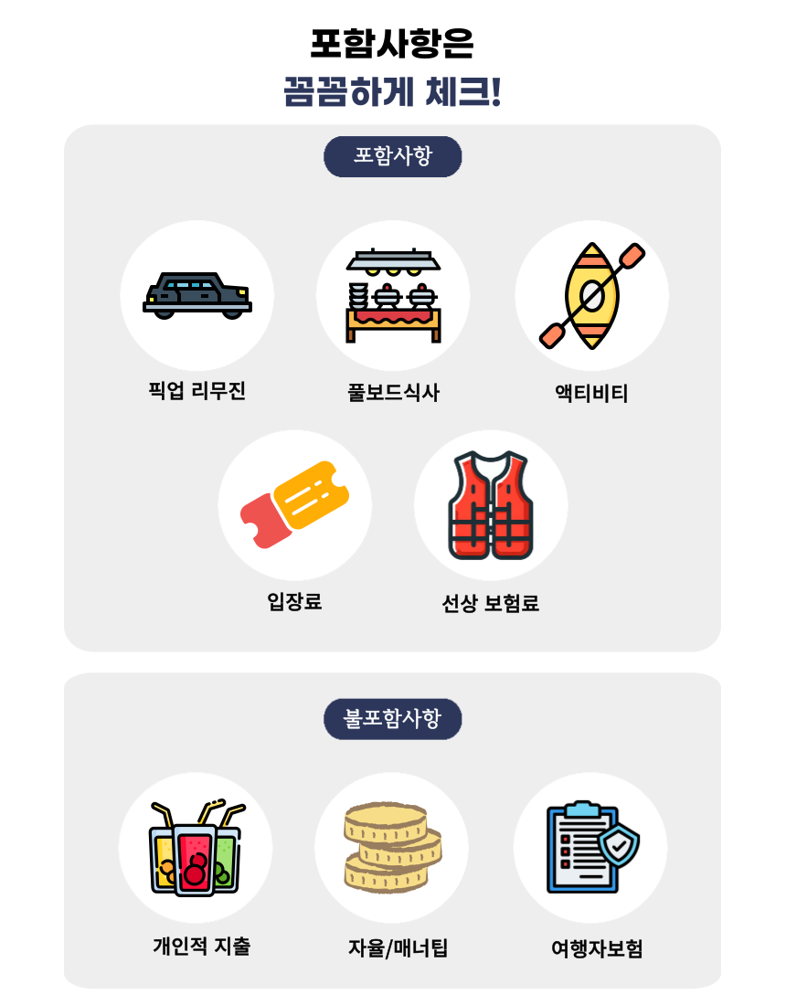 크루즈 일정 도중 취소 시 | 제공된 서비스(차량, 중식, 입장료) 공제 후 환불 |