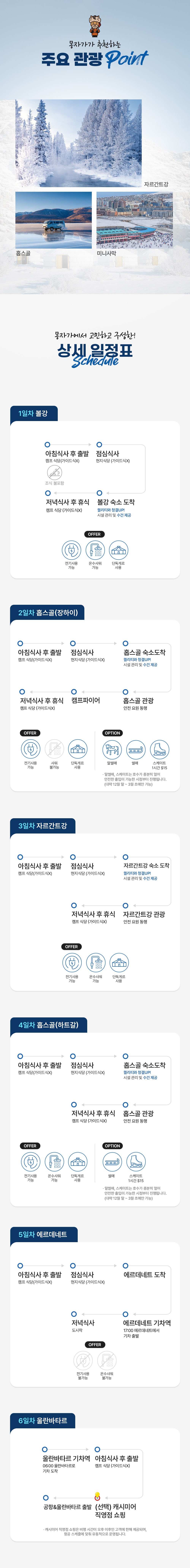 온천,은하수,모래썰매,낙타,타미르강,승마,독수리,칭기즈칸동상,쇼핑
