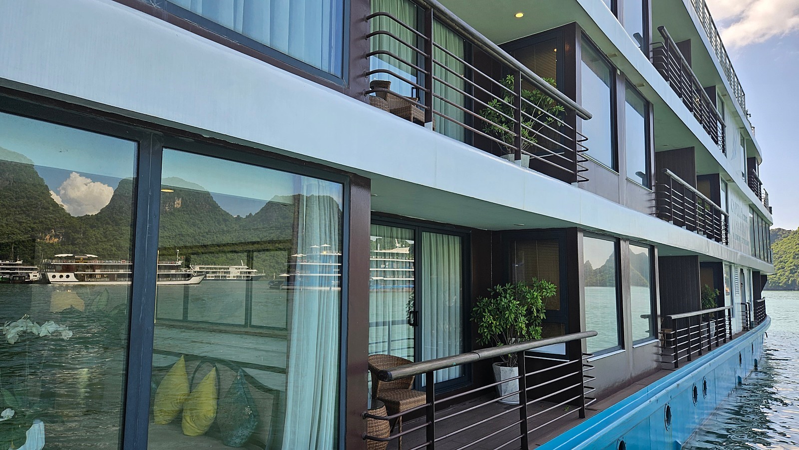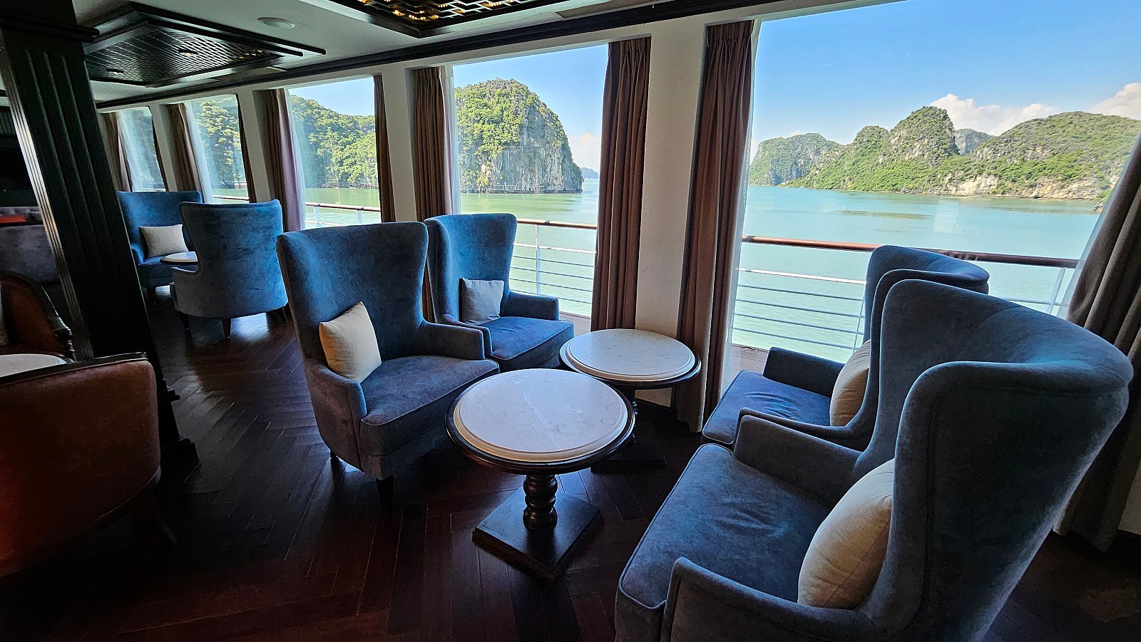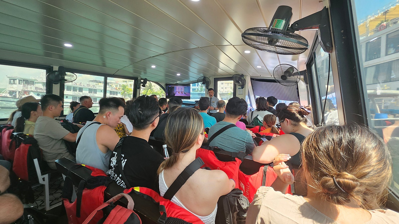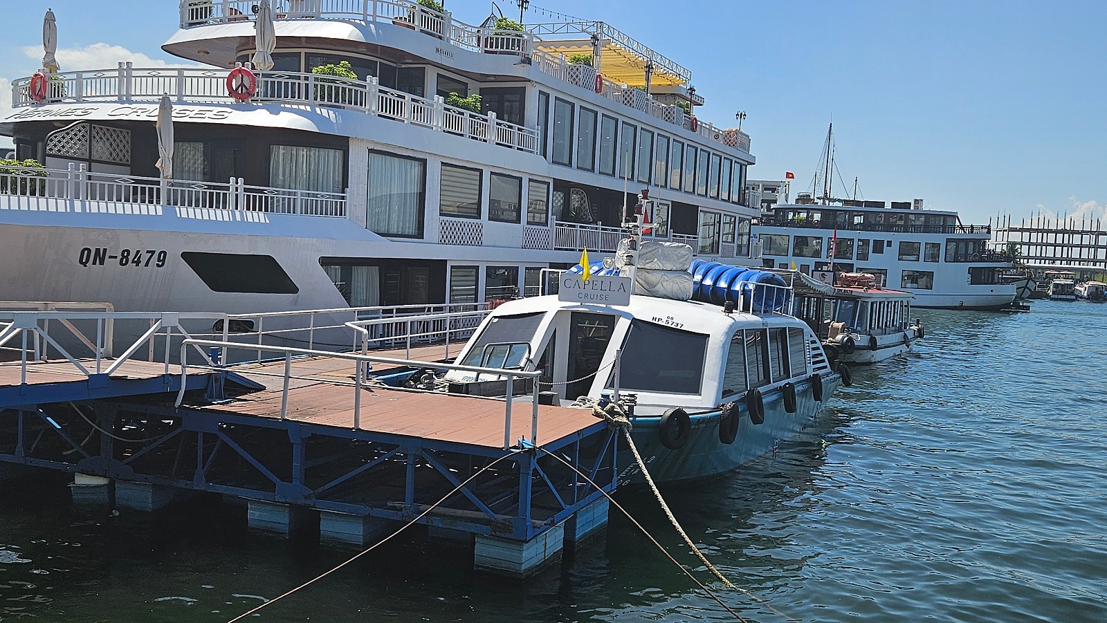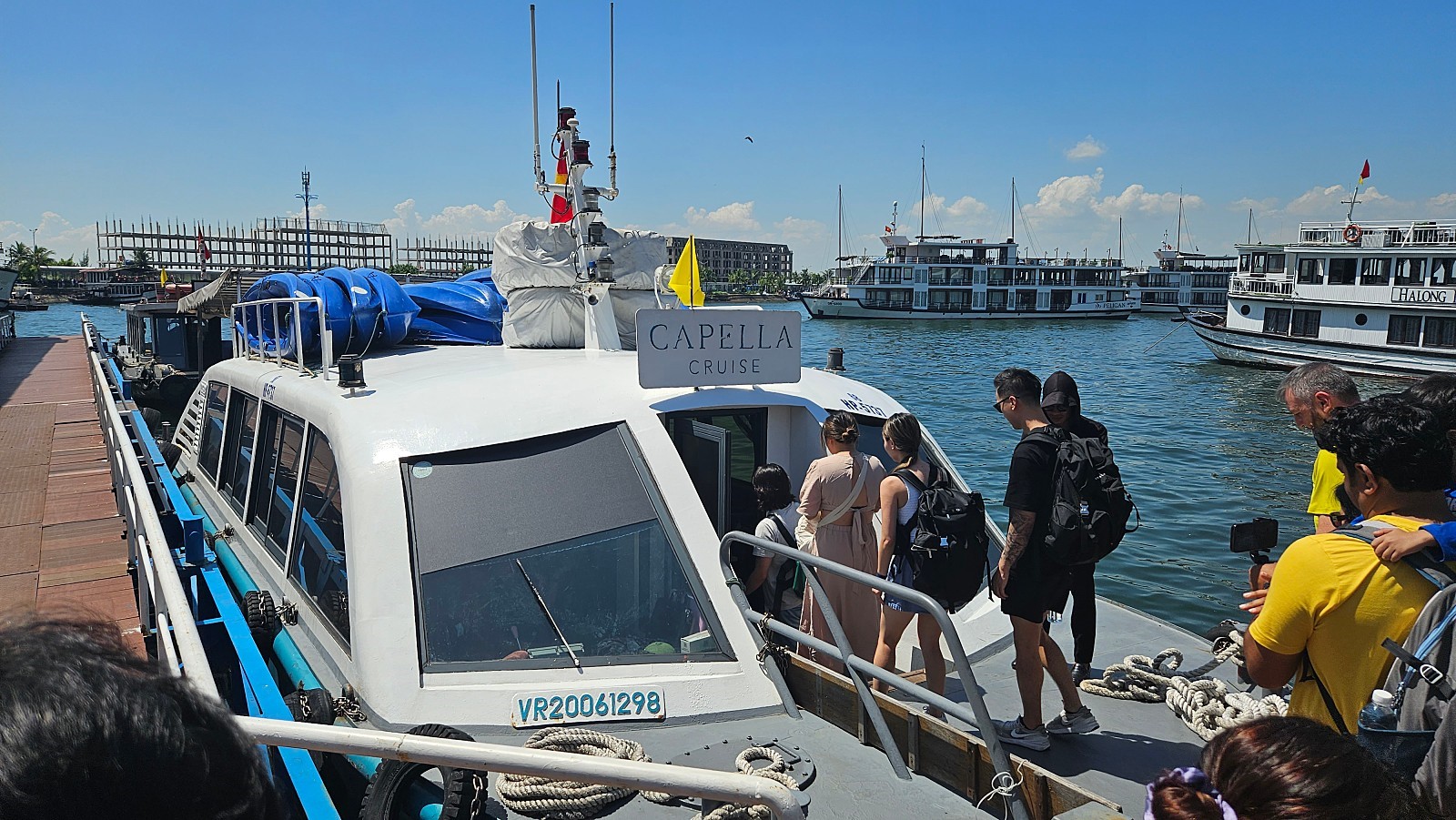 하노이 - 하롱베이 편도 2시간 30분 정도 소요됩니다. 선착장 도착 후 현장 직원의 안내에 따라 대기 합니다. 이곳에서 객실 키를 전달받고, 캐리어가 있다면 캐리어는 직원들이 직접 크루즈로 옮겨 드립니다.