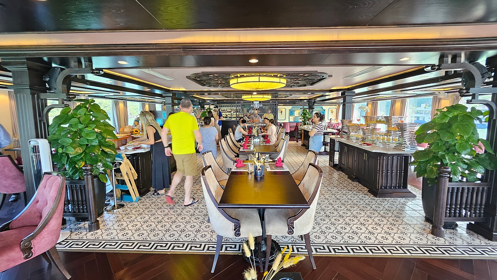 오전 6시, 선덱에서 베트남식 체조를 진행합니다. 이후 6시 15분 부터 레스토랑에서 조식이 제공됩니다.