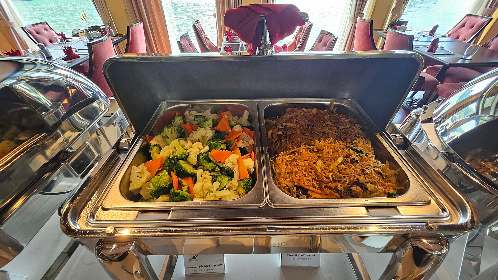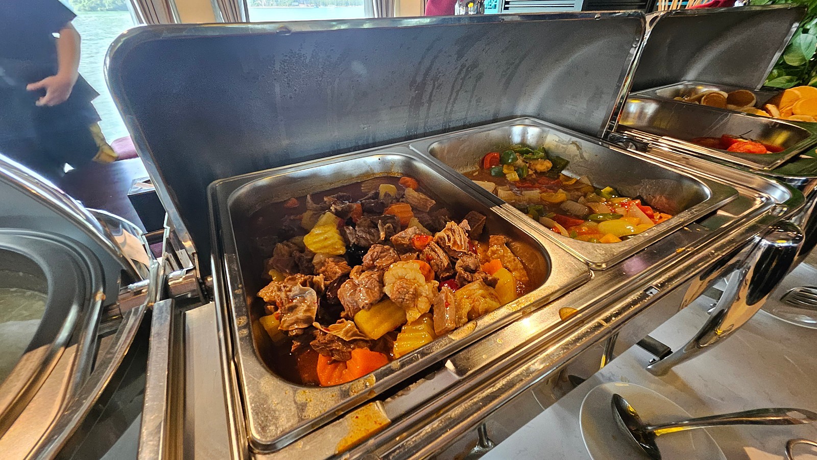 승선 후 객실에서 잠시 짐을 풀고 바로 오후 1시부터 중식이 제공됩니다. 중식 퀄리티는 아주 좋은 편입니다. 양식 + 현지 퓨전 음식으로 주로 제공됩니다. 서양인 탑승객들 위주로 빵이나 디저트류도 많이 준비되어 있습니다.