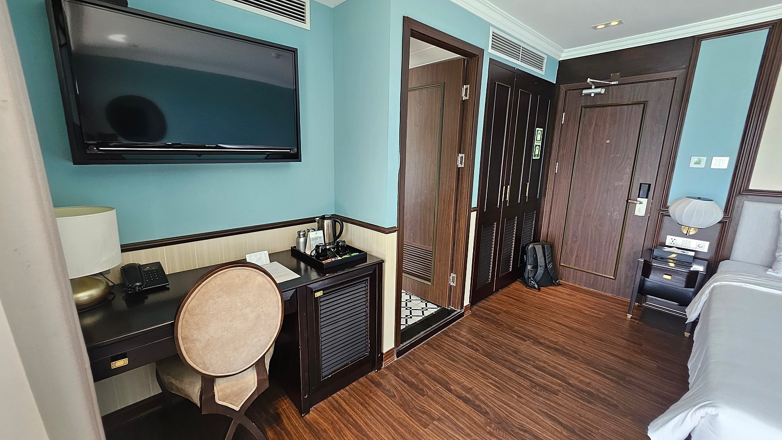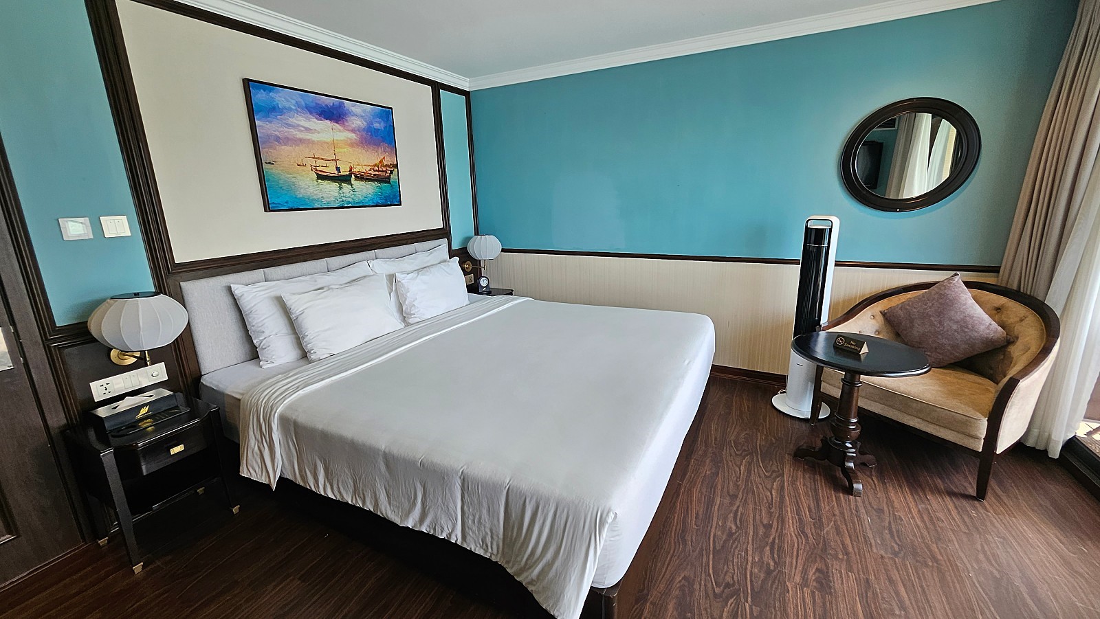 식사 후 잠시 객실에서 휴식을 취합니다. 아래 사진은 3층의 스카이 스윗 객실로, 1층의 오아시스, 2층의 하노이 객실과 면적과 디자인이 동일합니다. 타 스윗 객실은 해당 날짜에 모두 예약이 마감되어 사진을 찍지는 못하였습니다