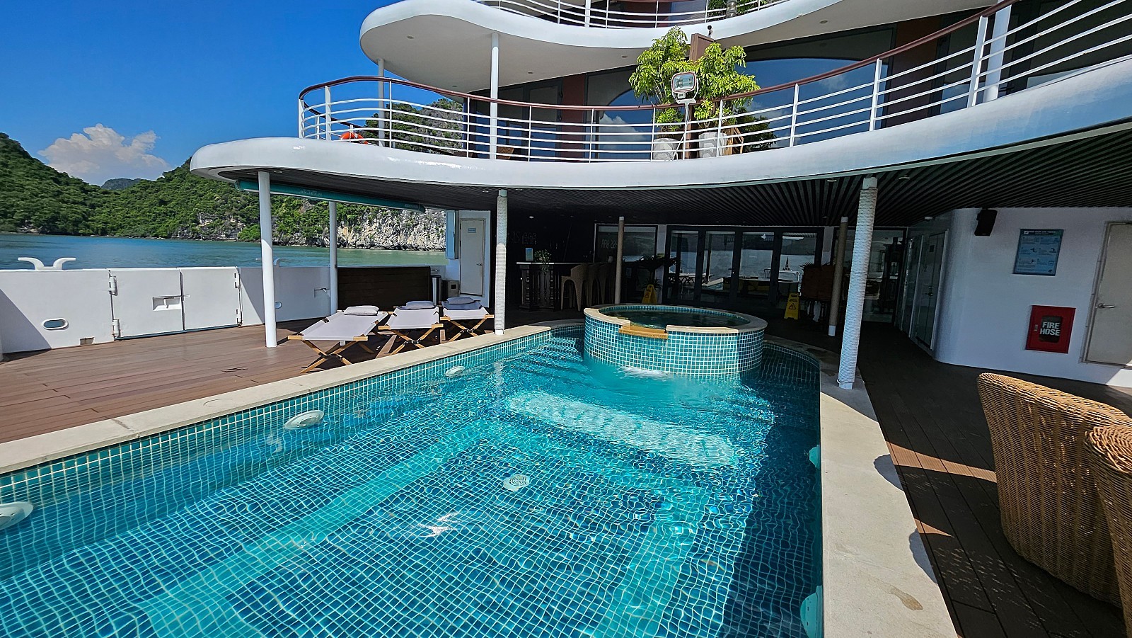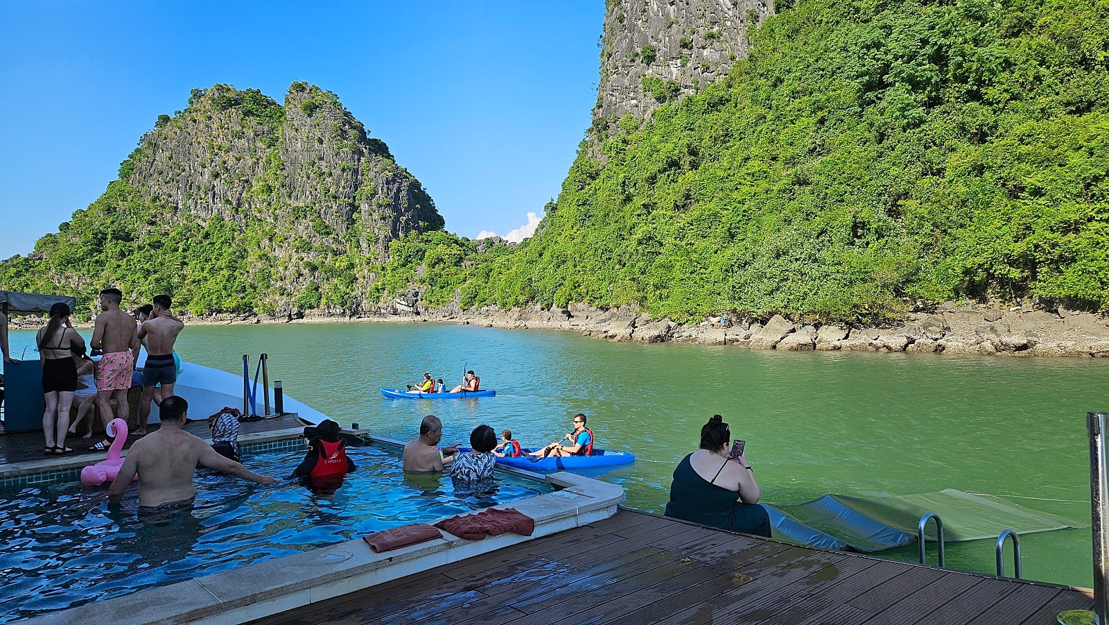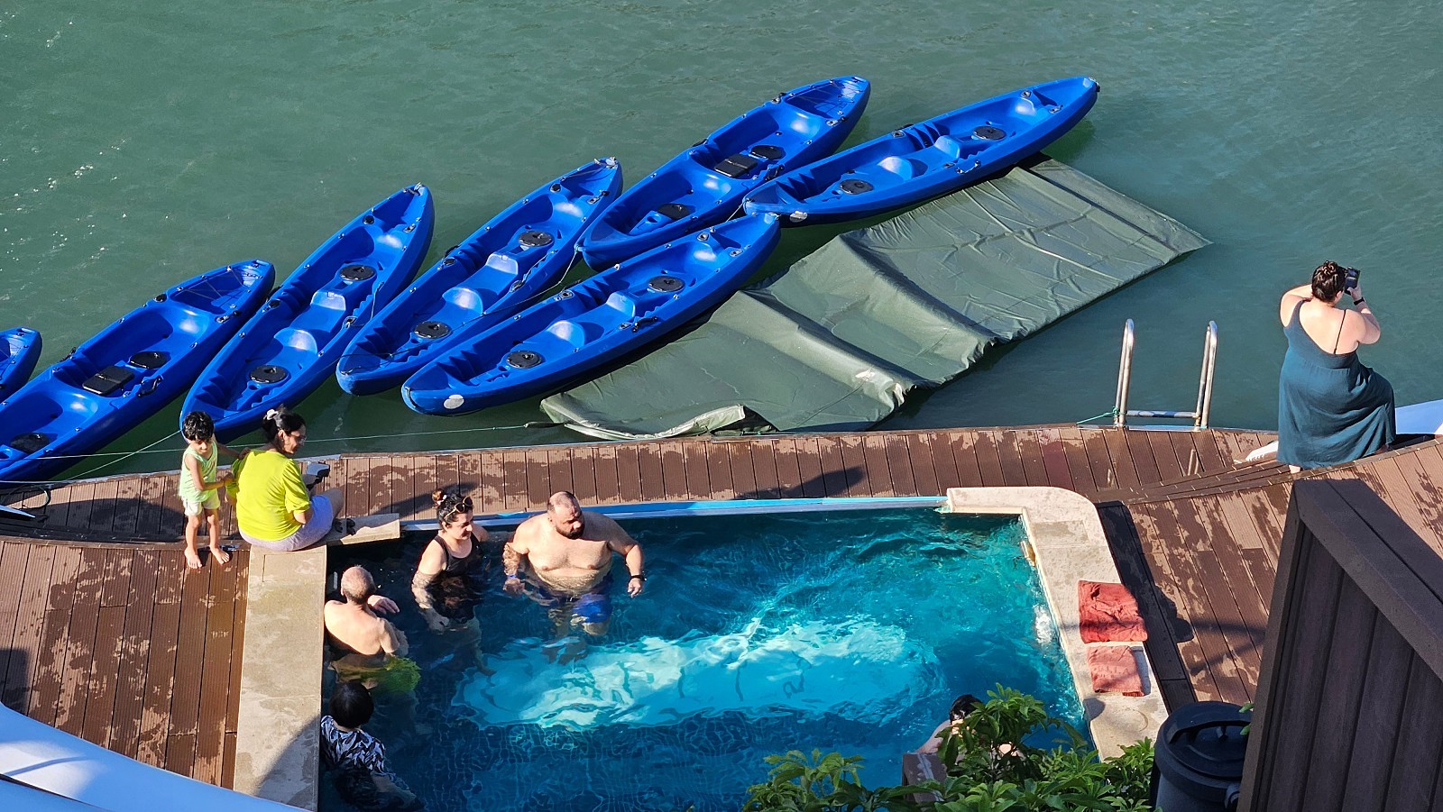 오후 3시부터 엑티비티가 진행됩니다. 1층의 수영장에서 시간을 보내시거나, 크루즈에서 바로 카약 체험을 하실 수 있습니다.
