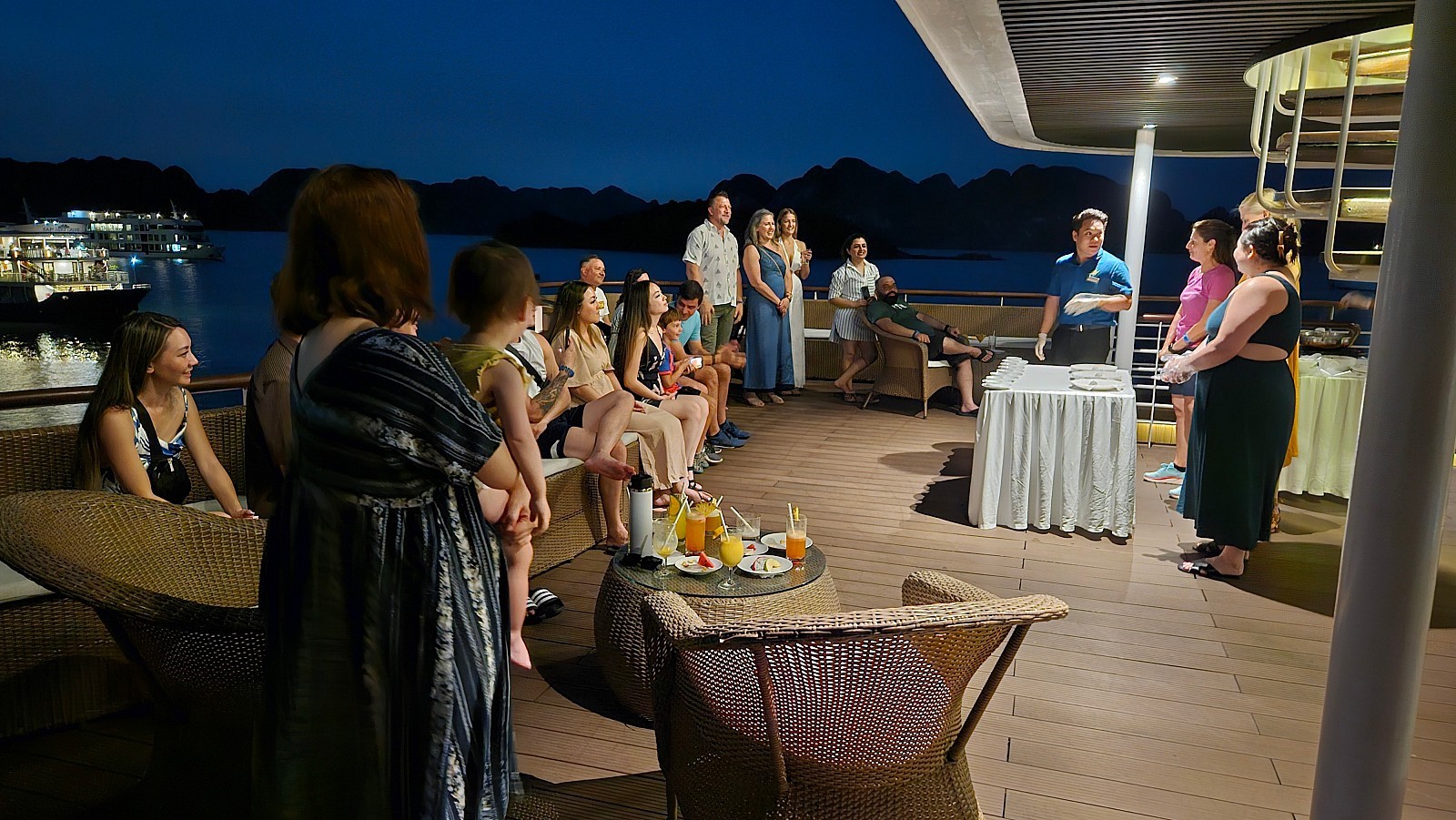 포커룸에서, 다른 승객들과 게임을 진행하실 수 있습니다 (실제 돈을 걸진 않습니다) 선덱에서 하롱베이를(하롱베이와 아주 흡사한 짱안) 배경으로 찍은 영화(킹콩)을 상영합니다. 시즌에 따라 간단한 오징어 낚시를 즐기실 수 있습니다.