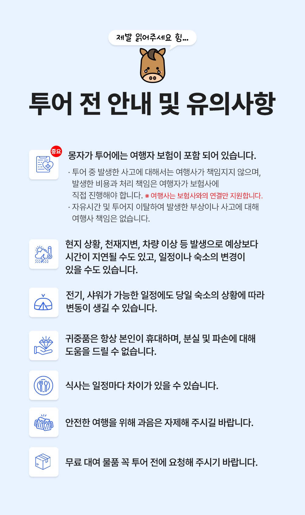 온천,은하수,모래썰매,낙타,타미르강,승마,독수리,칭기즈칸동상,쇼핑