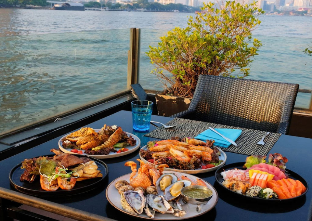 차오프라야 강변에서 분위기 있고 여유로운 씨푸드 디너 뷔페로 크루즈와는 또 다른 분위기입니다.