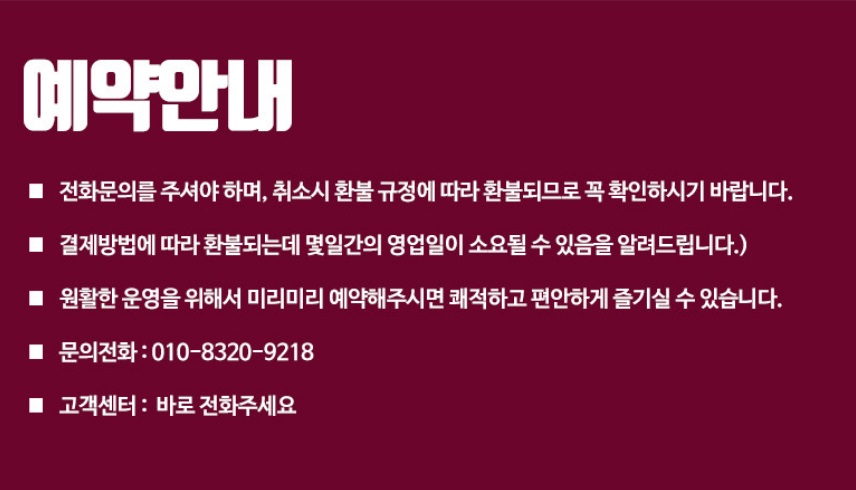 기타 픽업 가능 장소: 파크 아잘레야, 라군, 휴,이몰버젯마트, 스테이션 3 안독스 (예약 시간 25분~15분 전)