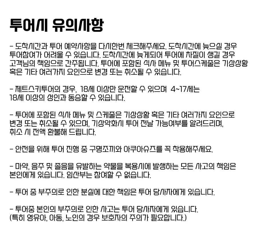 • 투어 3일 전 취소(한국시간 17시까지): 전액 환불