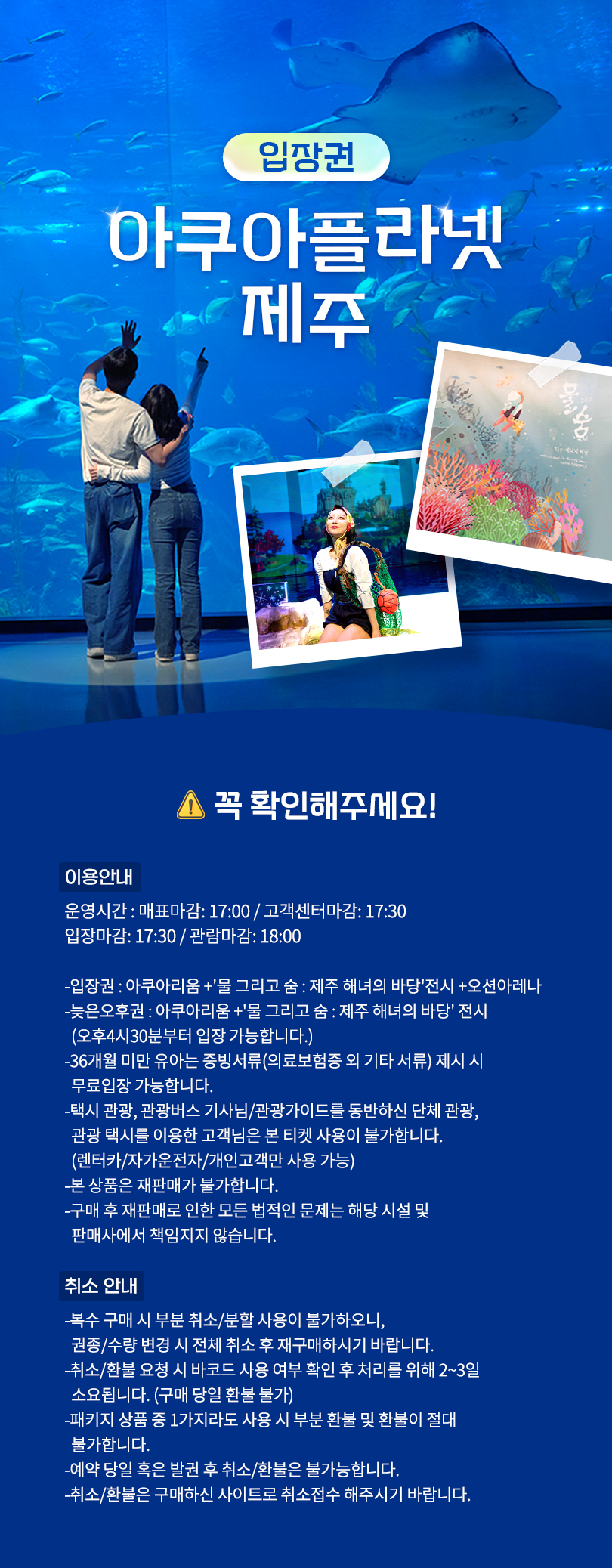아쿠아플라넷 제주 입장권 & 늦은오후권 (25.10월)